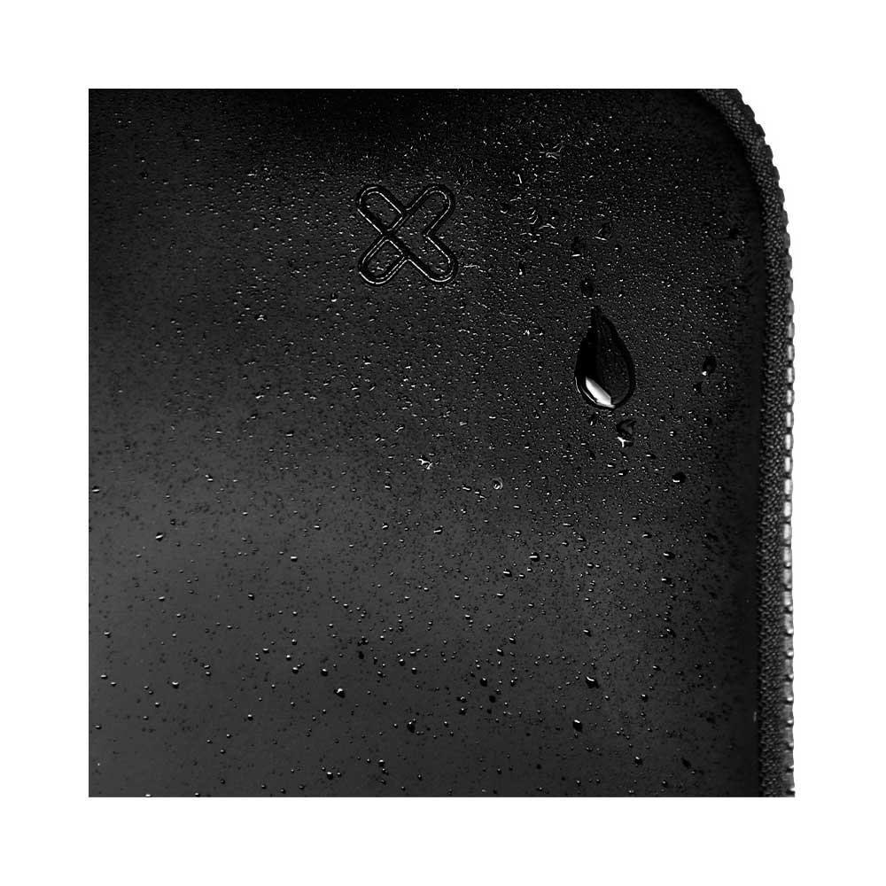 Material exterior de poliuretano resistente al agua protege accesorios de salpicaduras en trayectos. Interior forrado en poliéster suave evita rayones en gadgets. Correa integrada permite portabilidad independiente o dentro de mochila.